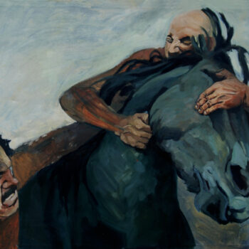 Hagal, rune associated to death, skull and snake as symbols of death and rebirth. 70x50cm, oil on canvas, 2020